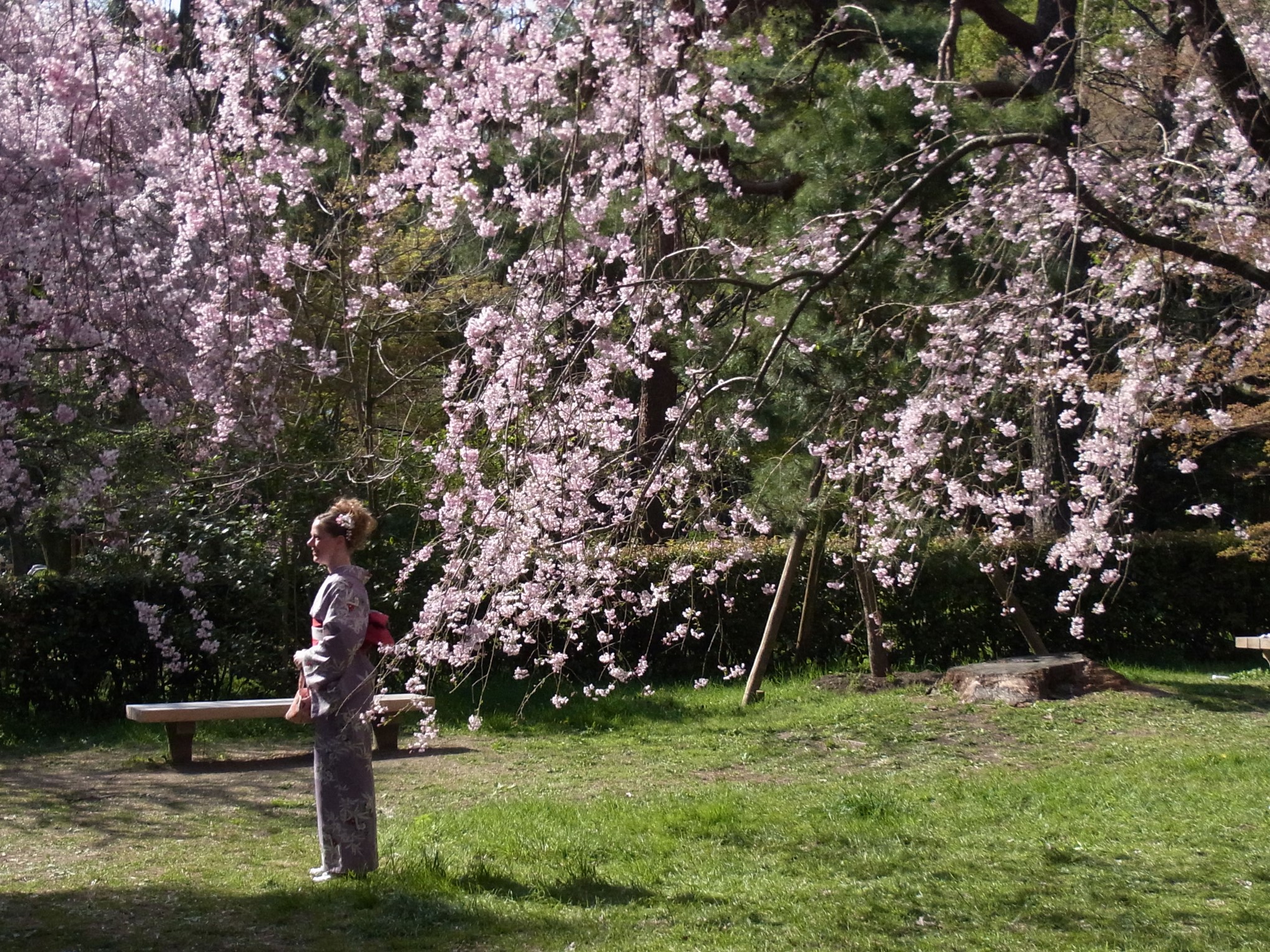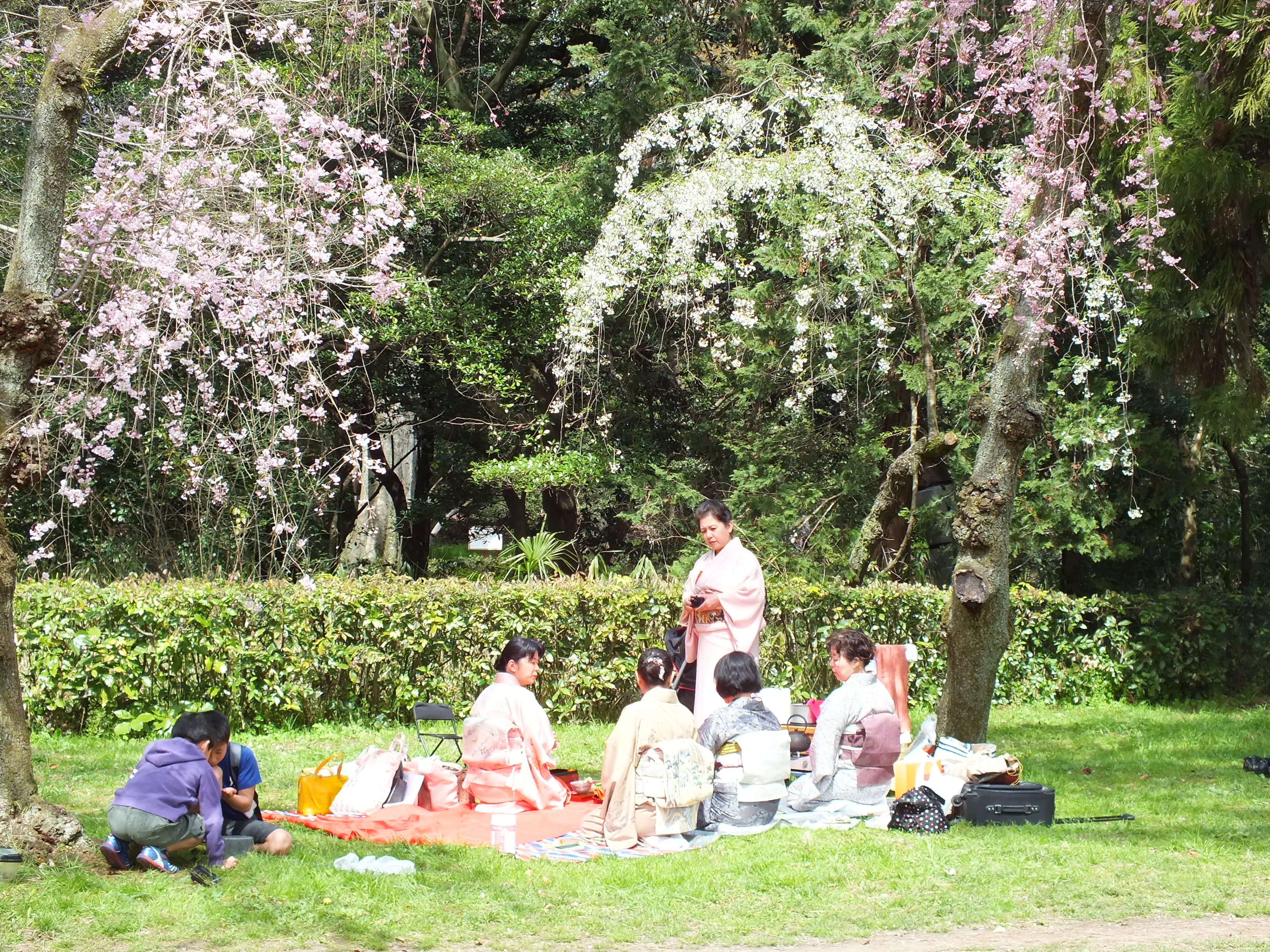 大阪保険医雑誌の本年3月号表紙になった写真「桜の下で‐茶会‐」「米人女性の着物姿」(これはまだ掲載されておらず)この2点の写真は2年前の4月初旬に京都御園で撮影したものです。